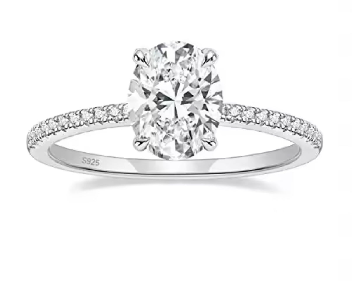 9ct White Gold 3ct. moissanite Ring with encrusted band half way around each side