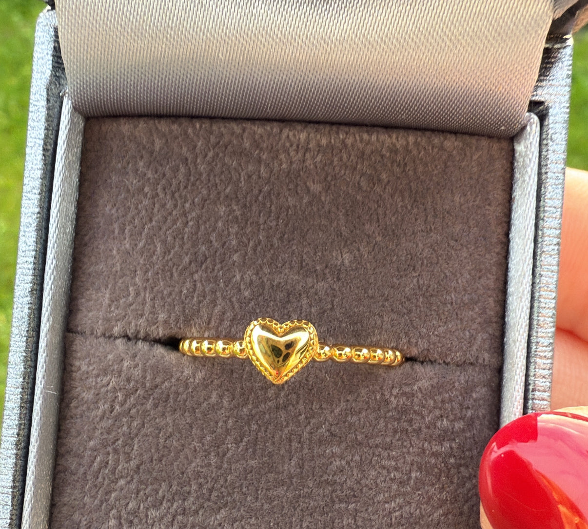 Gold-Plated Sterling Silver Beaded Heart Ring