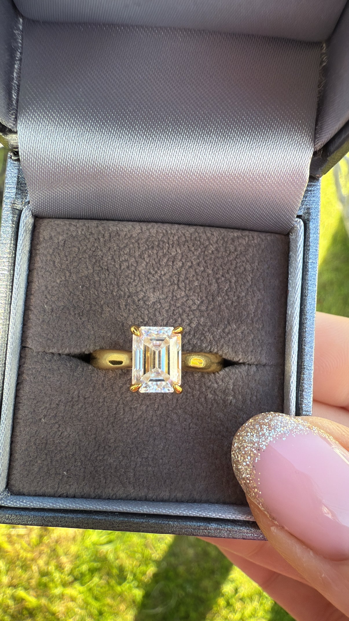 2ct Moissanite Radiant Cut Sterling Silver Gold Plated Ring- Gold