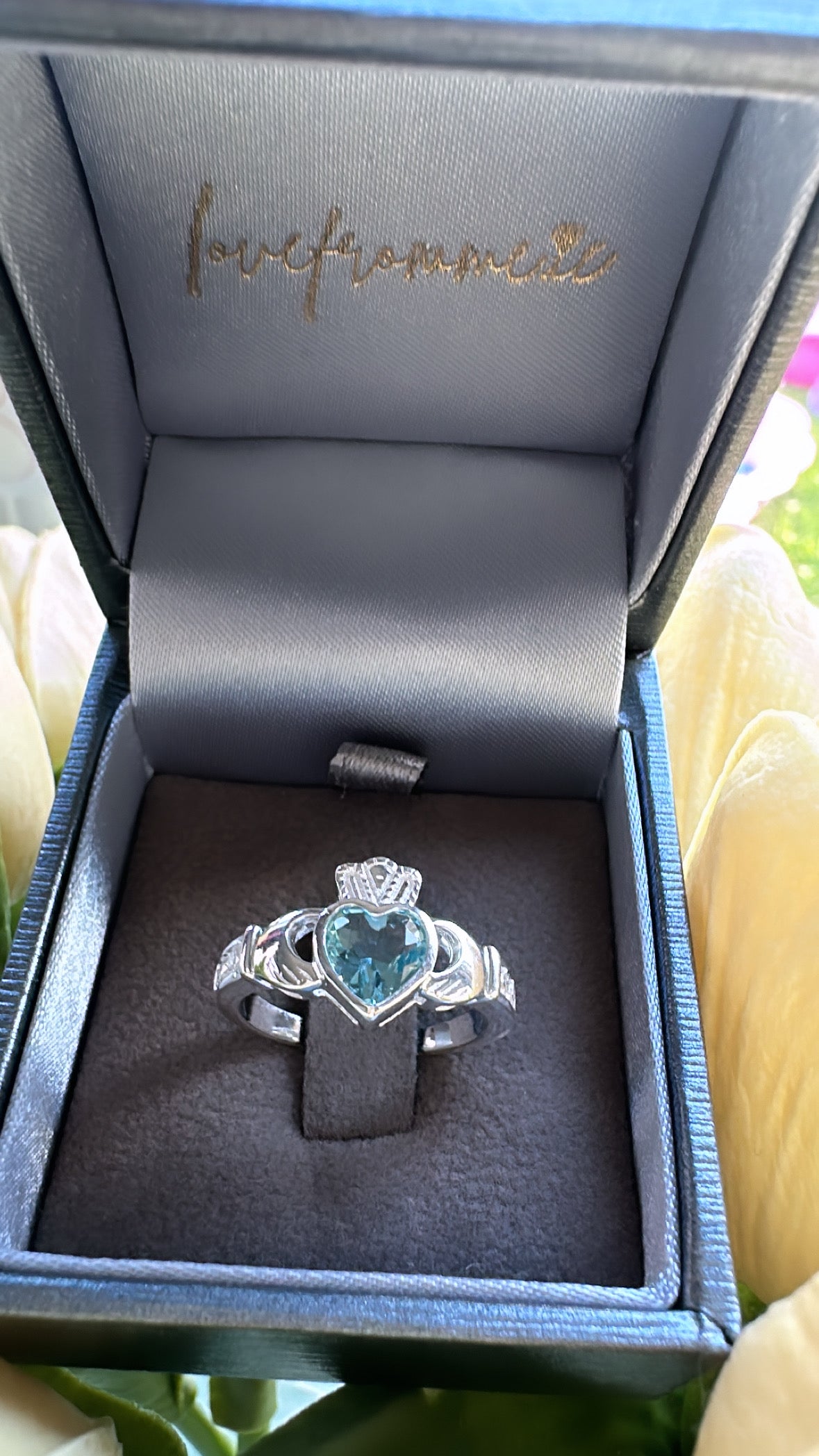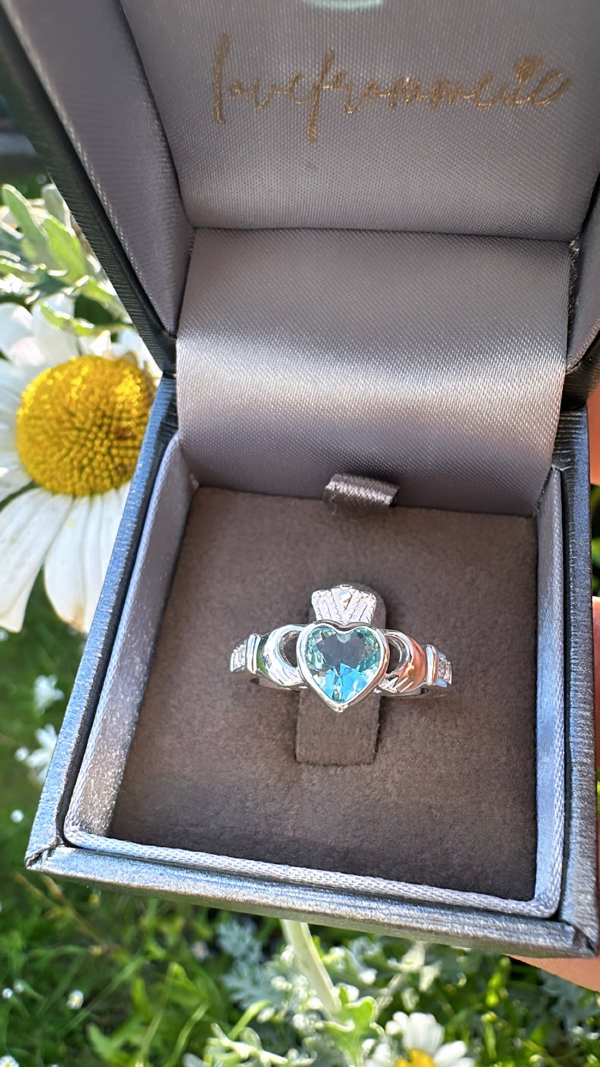 Sterling Silver Blue Topaz Claddagh Ring - December