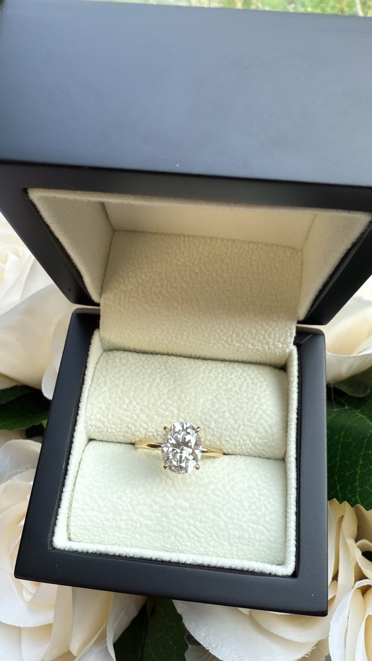 9Ct solid gold band with 3.5ct. emerald - Halo ring