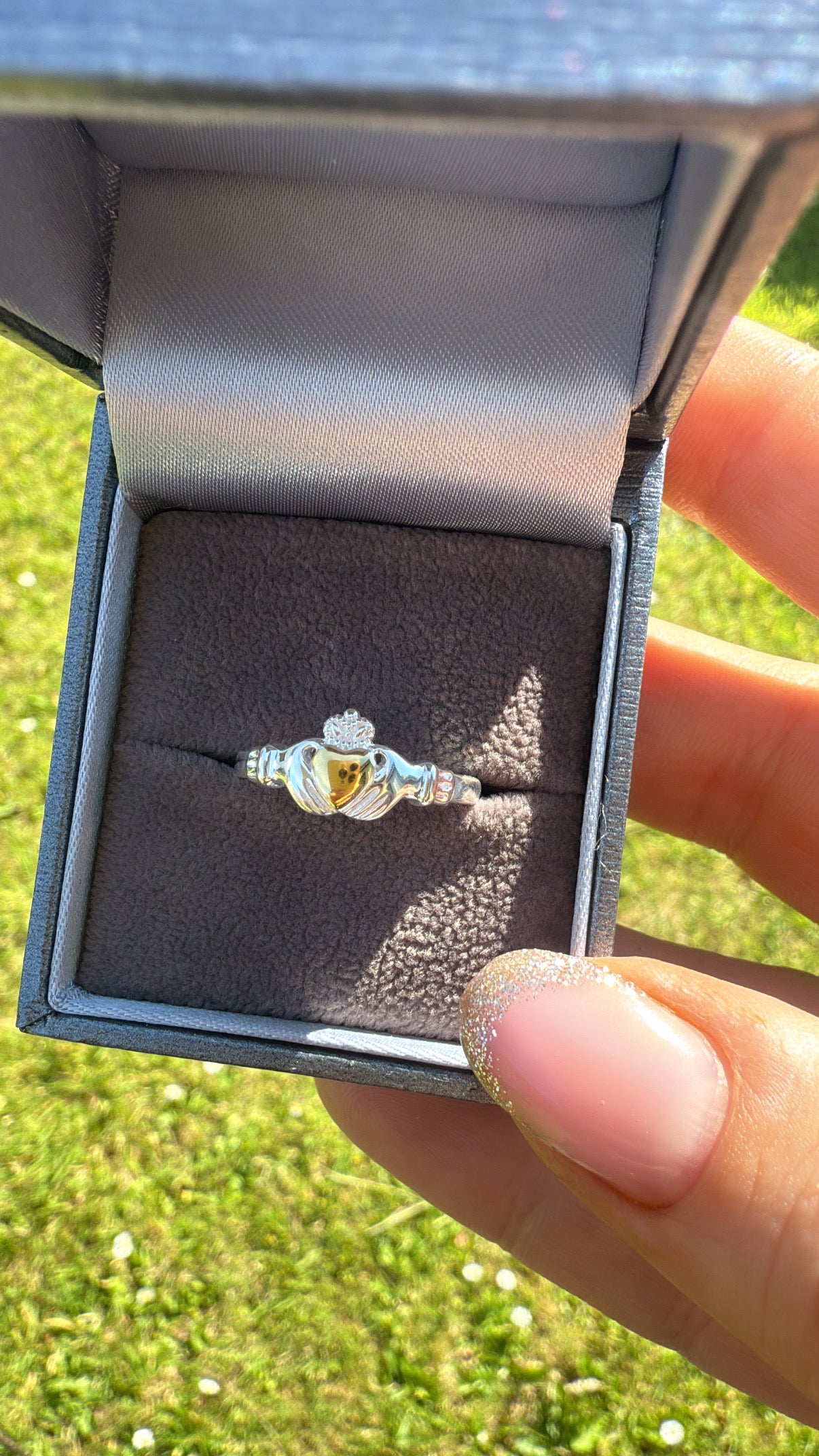 The open band design gives it a light, modern feel while maintaining its classic Irish roots. Whether as a promise ring, a meaningful gift, or a personal keepsake, this Claddagh ring is a perfect symbol of connection and commitment.