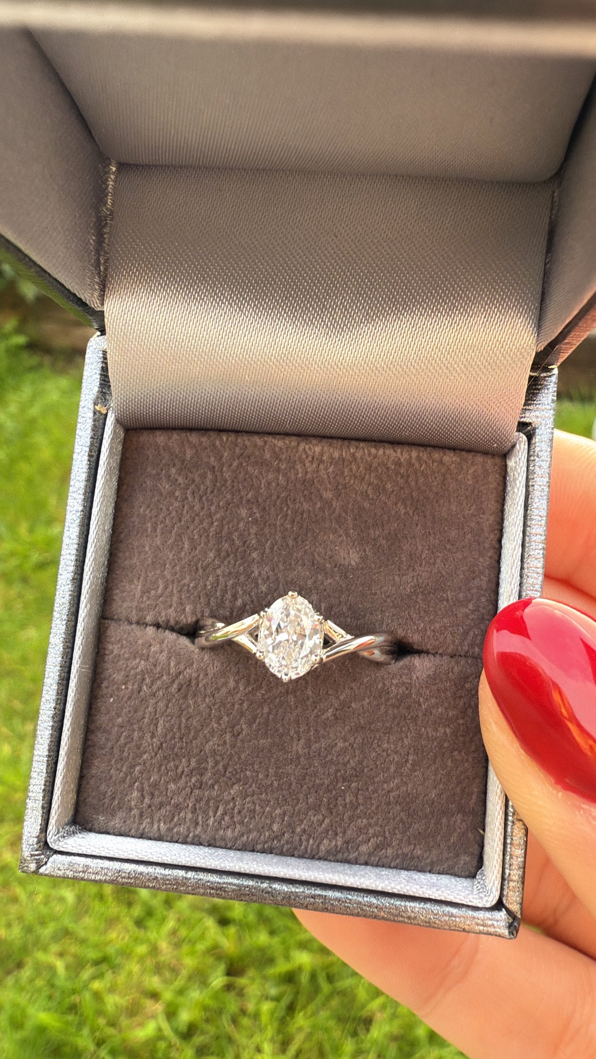 You can download any free ring sizer app if you have a ring that fits or you can measure the circumference of your finger with a piece of thread and convert using our ring size conversion chart here .